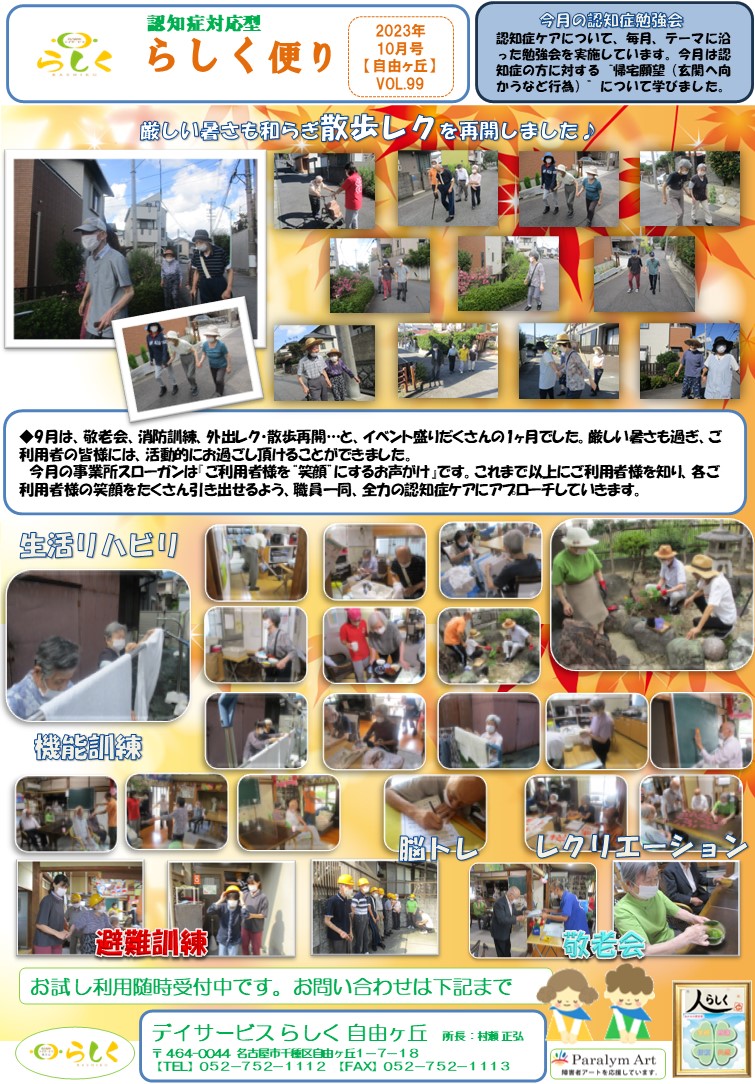 【10月号】らしく便り 自由ヶ丘
