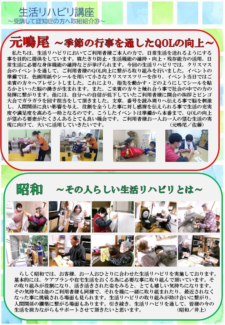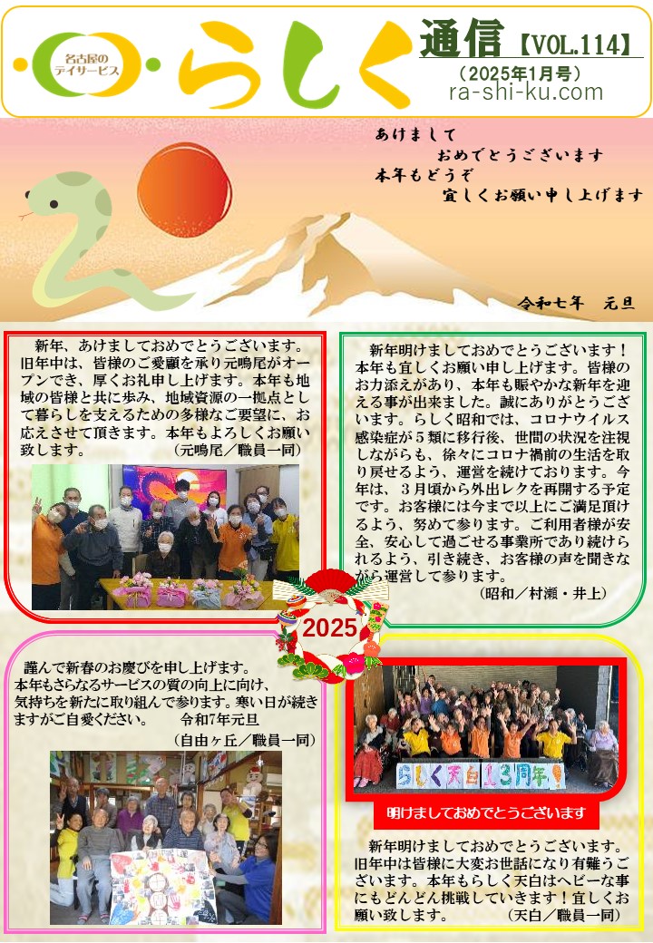 【1月号】らしく通信 - 名古屋のデイサービス「らしく」