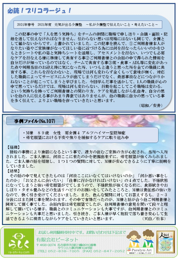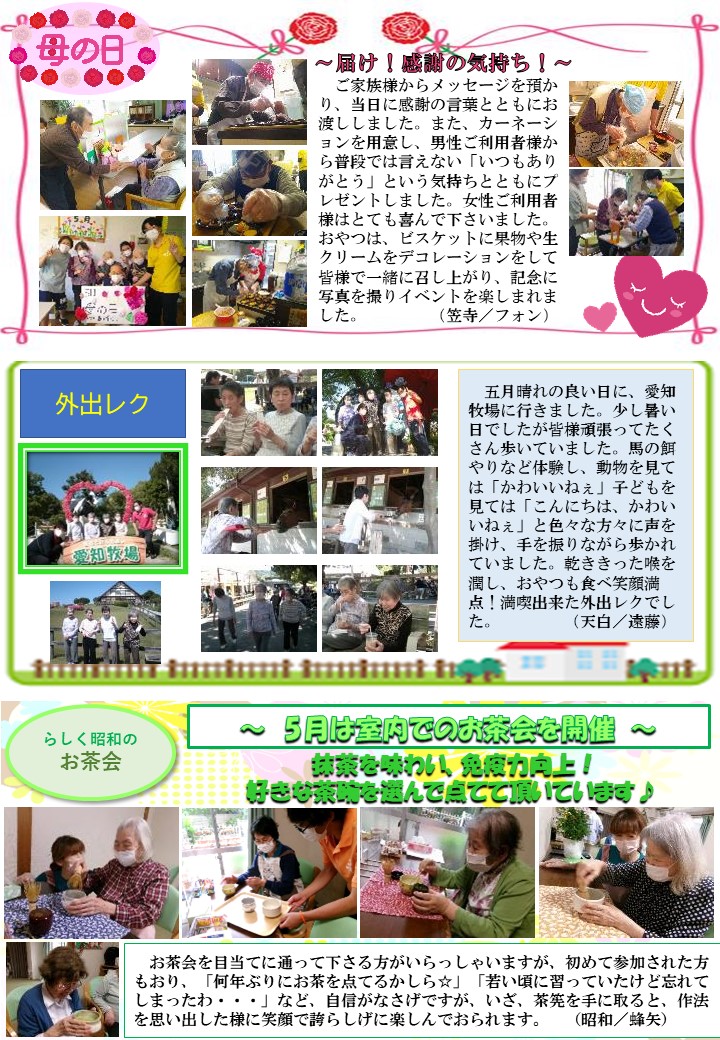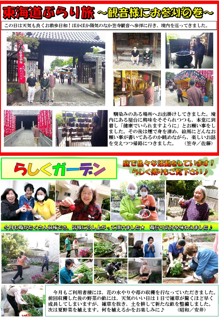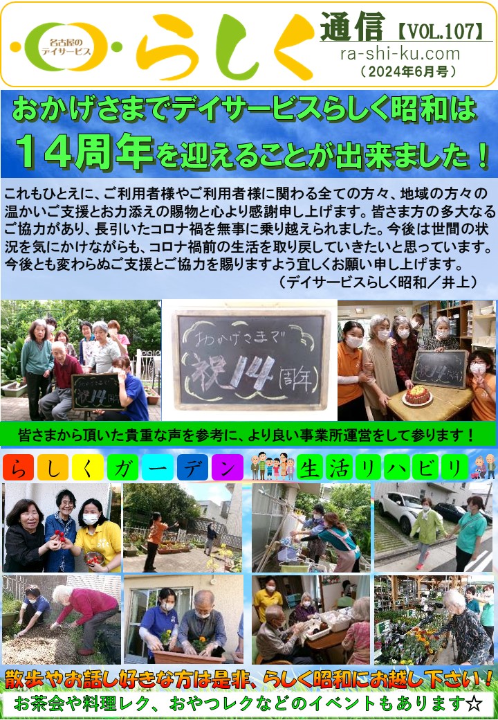 【6月号】らしく通信 - 名古屋のデイサービス「らしく」