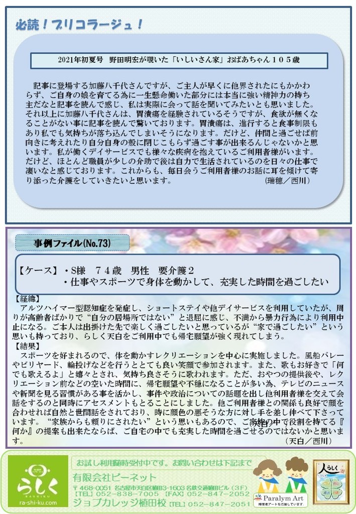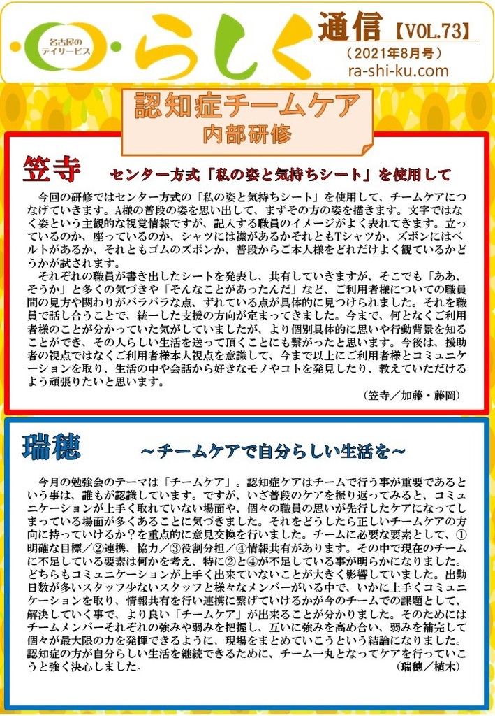 【8月号】らしく通信 - 名古屋のデイサービス「らしく」